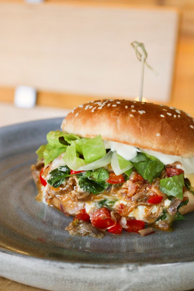 Бургер з телятиною та кімчхчі в сирному соусі